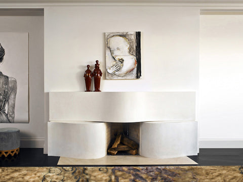 We first partnered with Leyden in the creation of the Wabele fireplace surround collection, a sculptural centerpiece inspired by West African symbolism and Art Deco style. In his words, “Wabele is about honoring a lineage. It’s a space for reflection, but also resilience.”