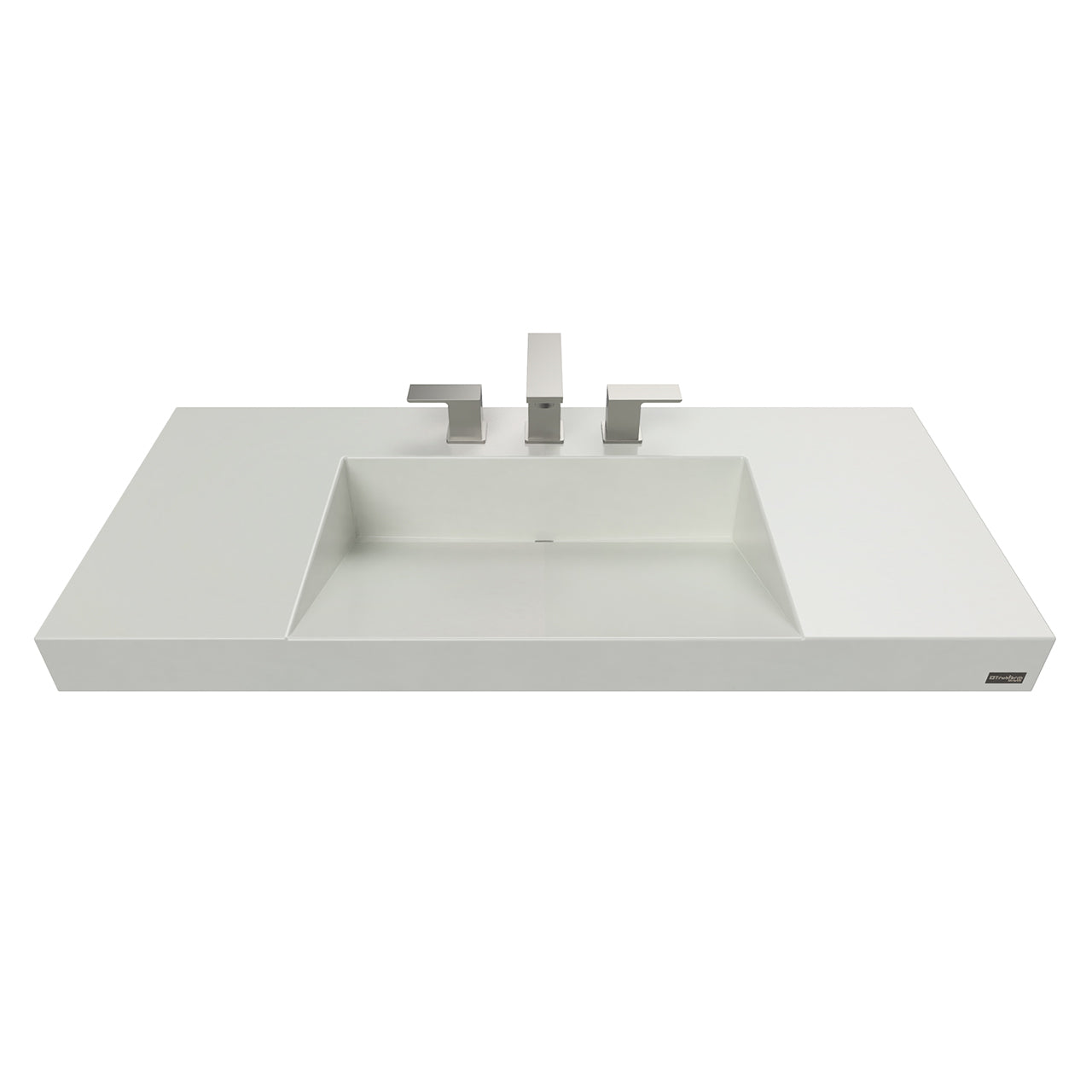 - Sink has a 3" profile and features an integrated ramp-shaped basin