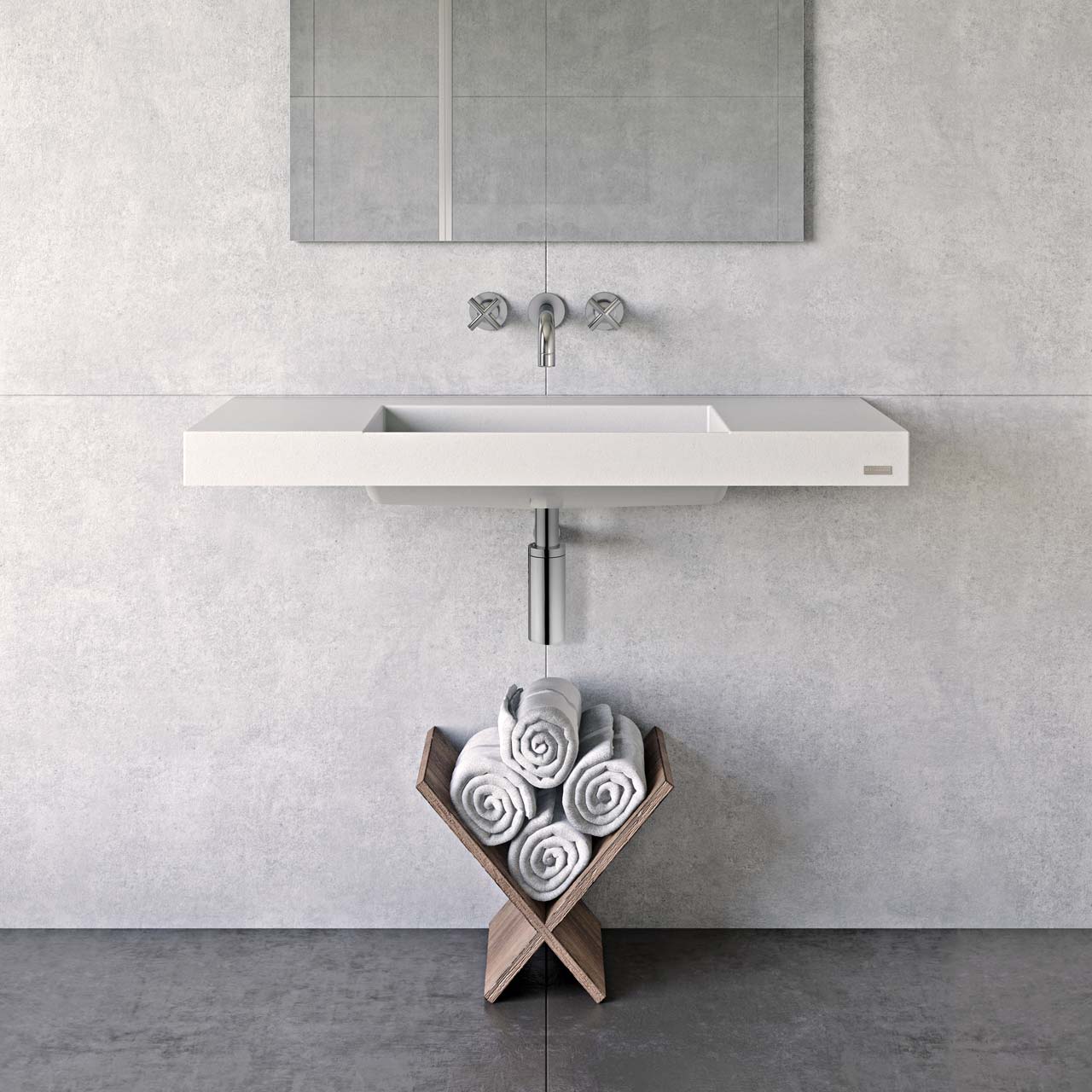 Handcrafted in the USA, the 40" Contempo Floating Concrete Ramp Sink is a modern bathroom wall-mounted solution with a 3" profile and an integrated ramp-style basin. Highly configurable in terms of color and faucet/soap hole options, each sink is a one-of-a-kind statement piece that will elevate your residential or commercial space.