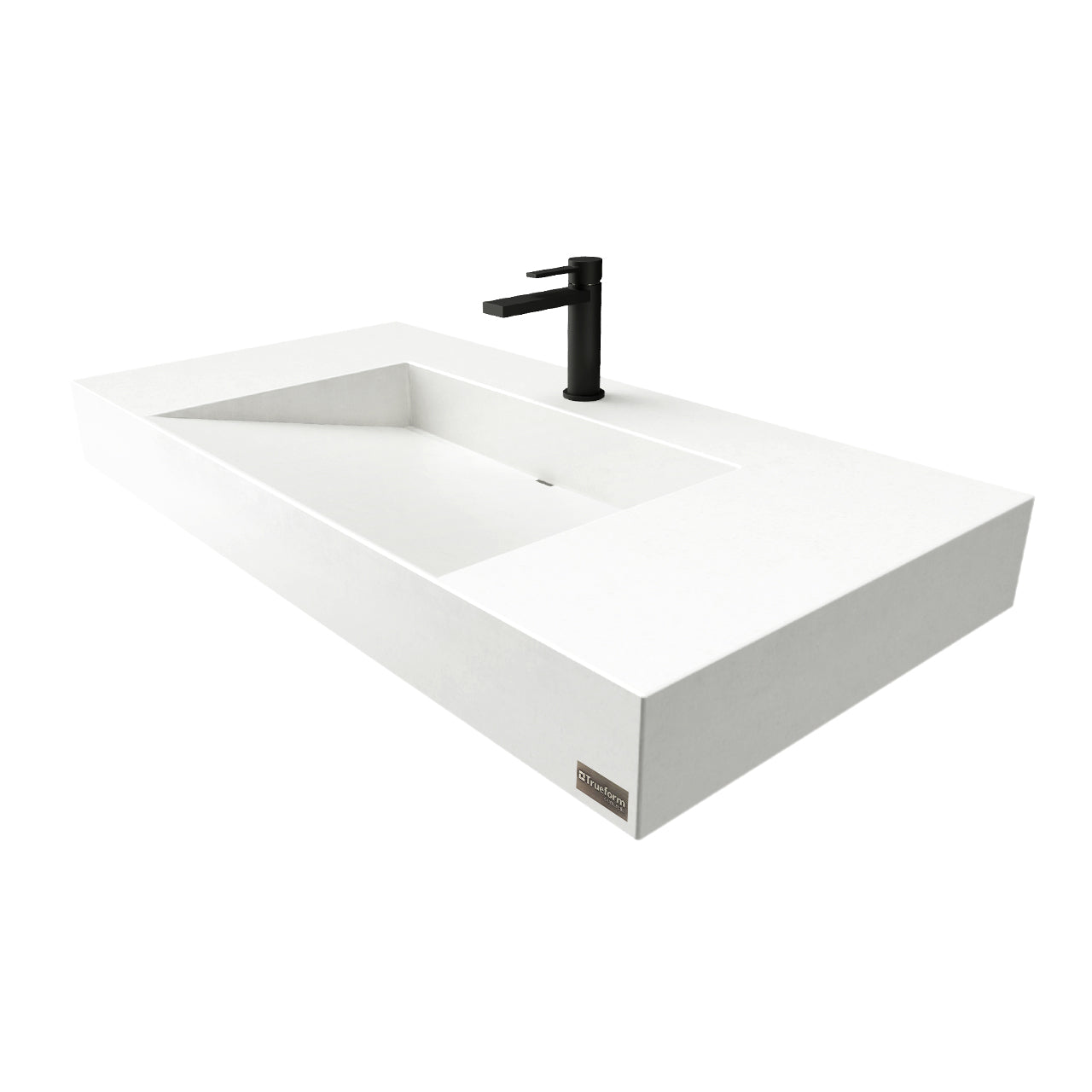 - Sink has a 4” profile and features an integrated ramp-style basin