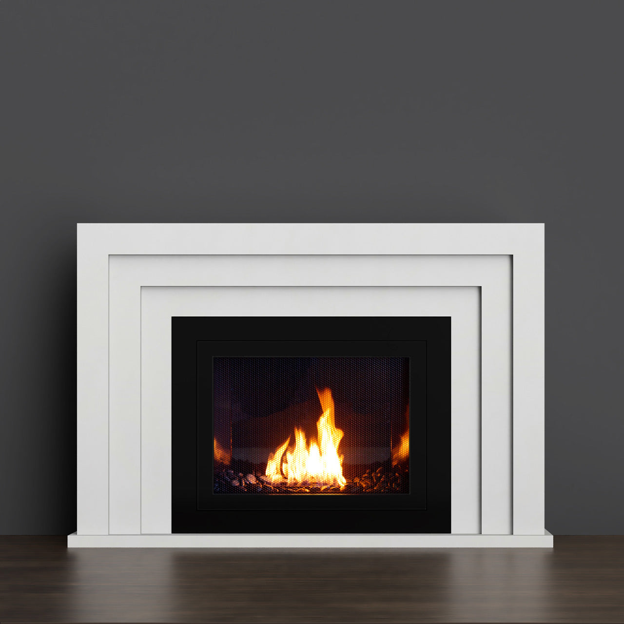 - 2-part system: The Surround is a single, seamless ¾”-thick concrete piece. The Hearth is a separate, 1.5” thick solid concrete slab.