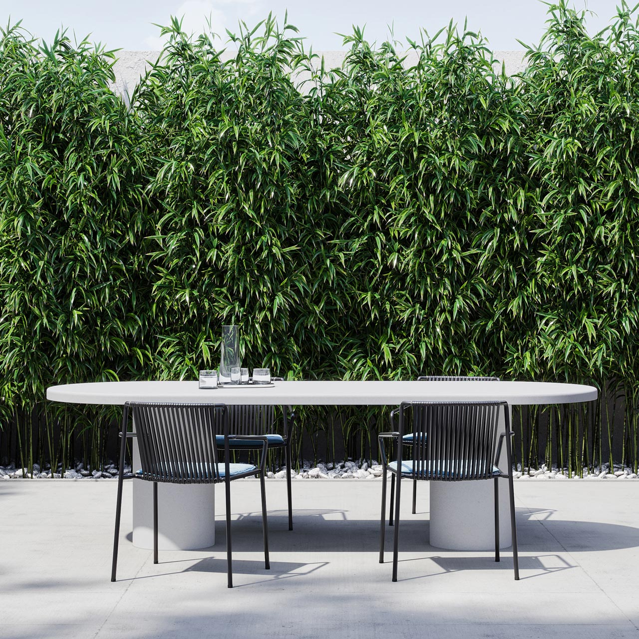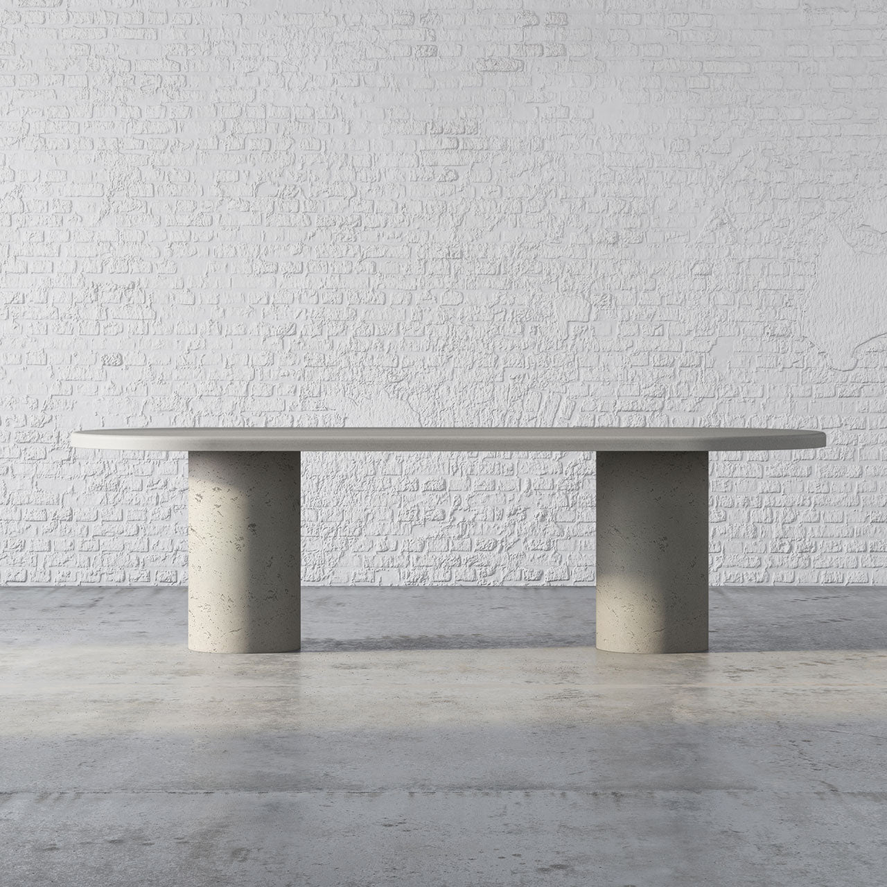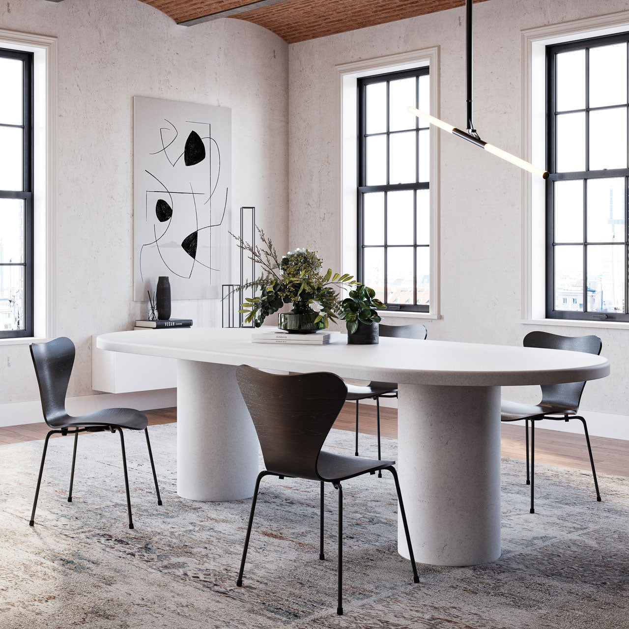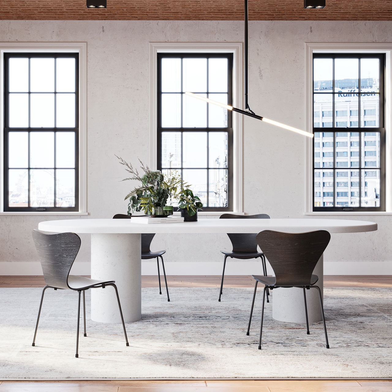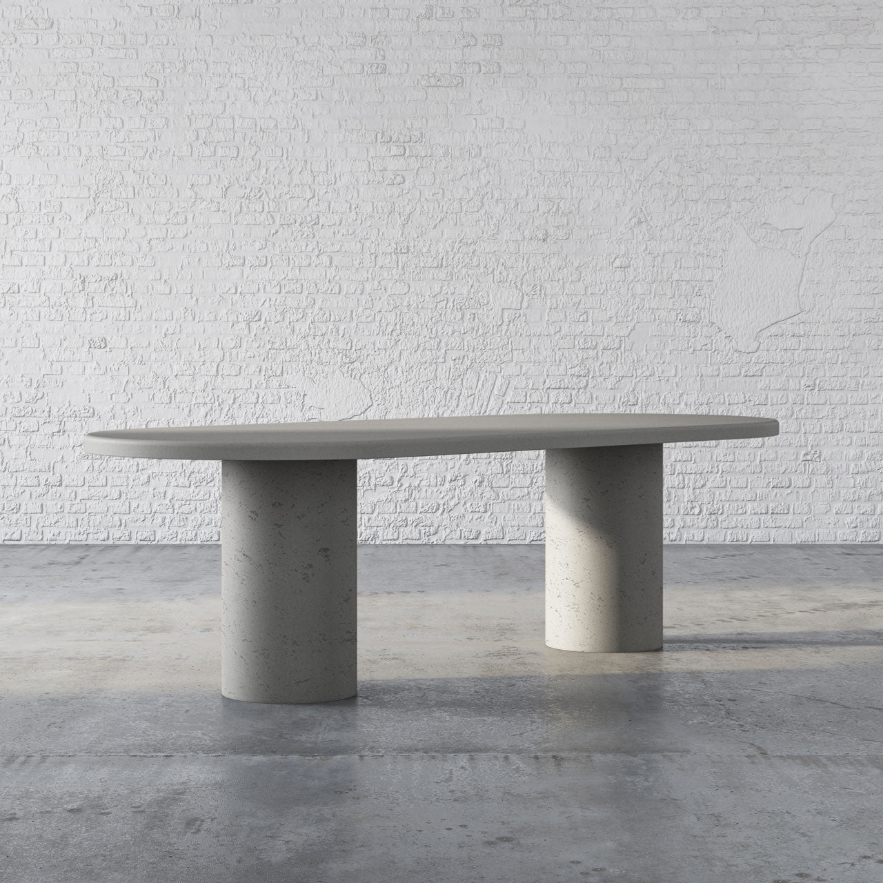 FORUM is an all-concrete table imbued with a sense of tranquility through its soft edges and curved surfaces. Its podium-style legs make optimal use of seating space. The FORUM line blends seamlessly into indoor and outdoor dining spaces as well as work areas and is available in multiple colors and sizes.
