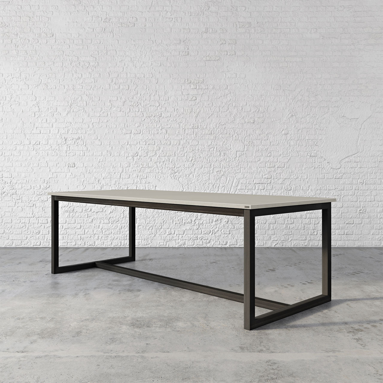 Lean and versatile, the Union Concrete Table works as a desk, conference table or restaurant dining table. The base is hand-made in the USA using 2” tube steel and features built-in levelers to ensure that it rests evenly on the floor. The solid 1” concrete top hangs 1” over the entire perimeter of the base. Union tables can be used indoor or outdoors.